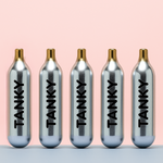 Standard 16g threaded food-grade CO₂ cartridges.
