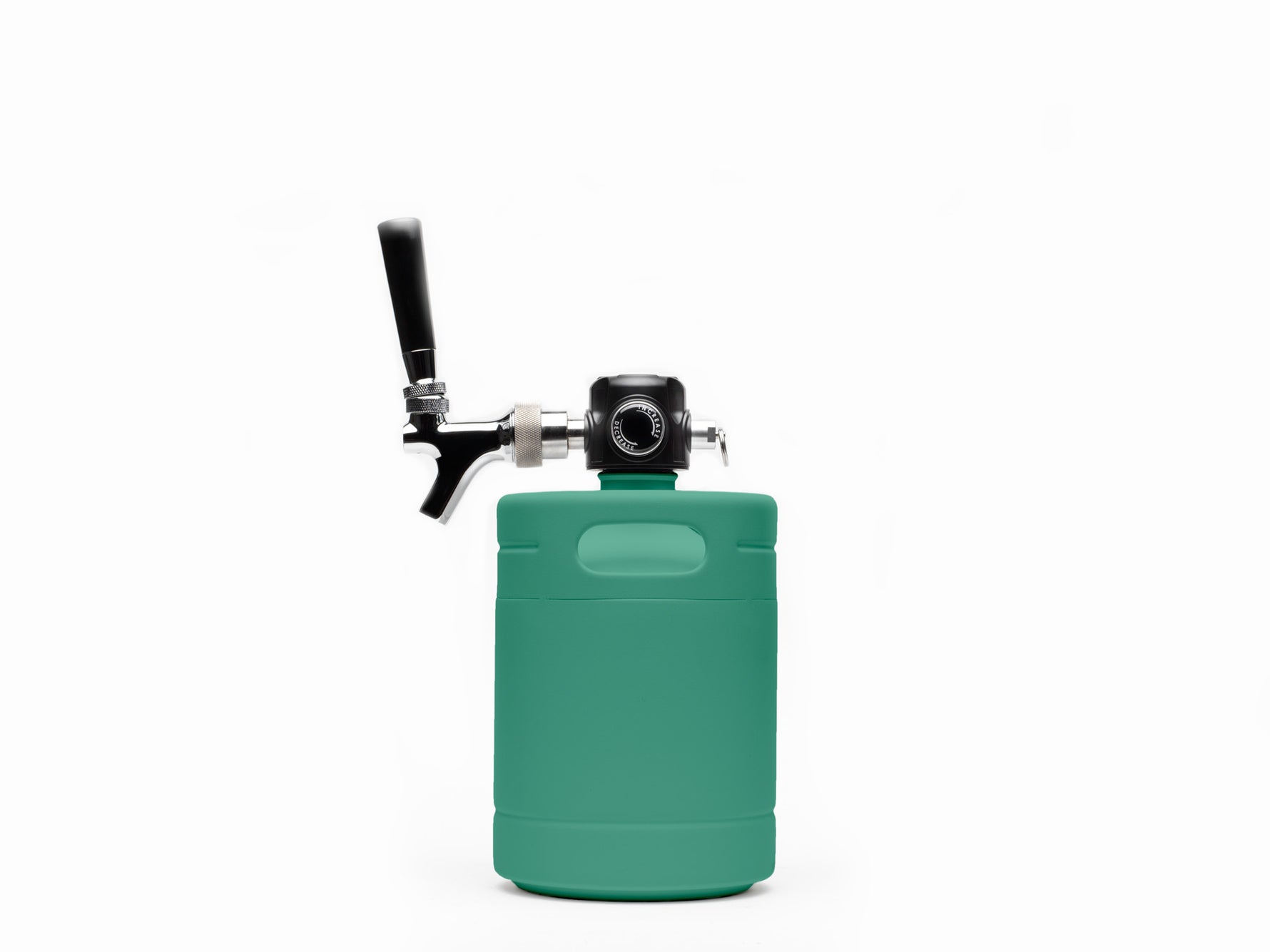 Fill with up to 2L of your drink, attach the tap + pressure lid, twist in a 16g threaded CO₂ cartridge, and pour.