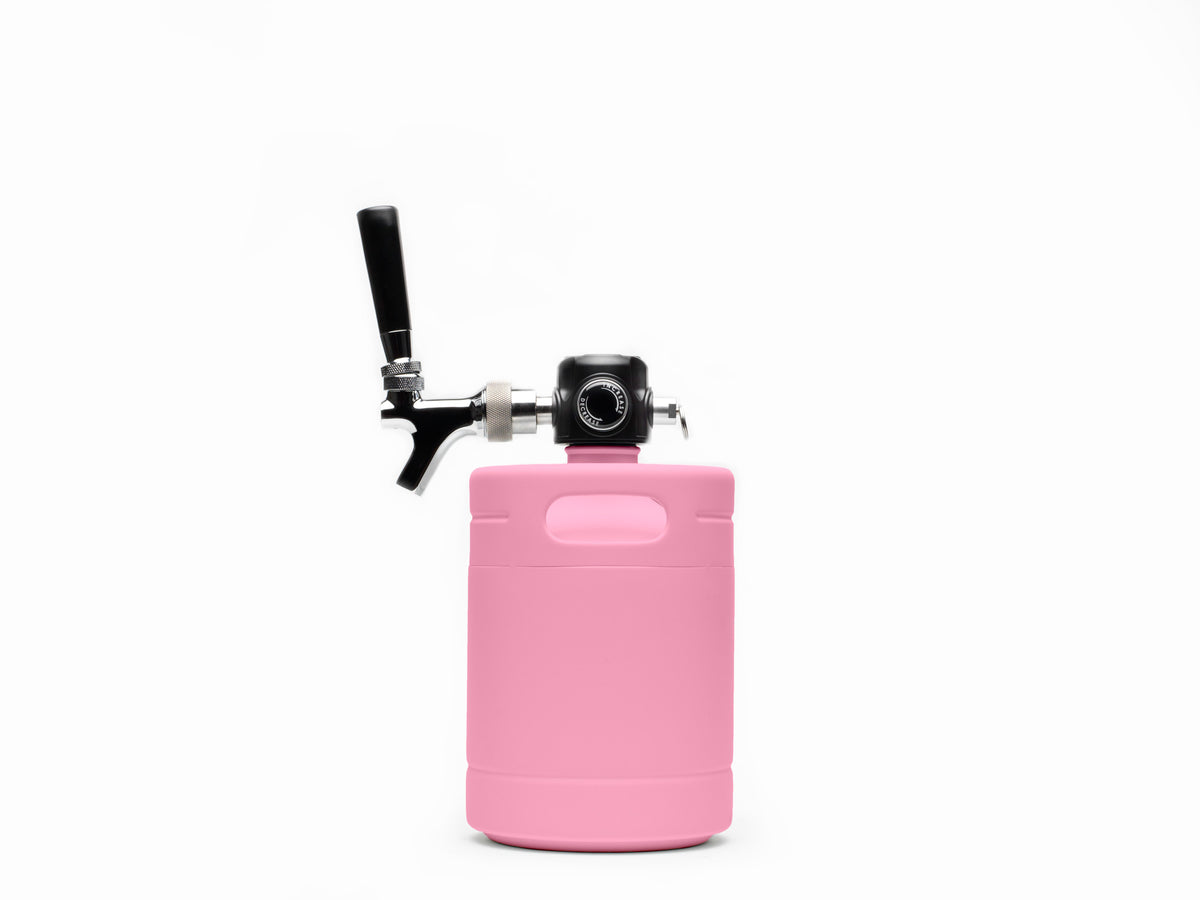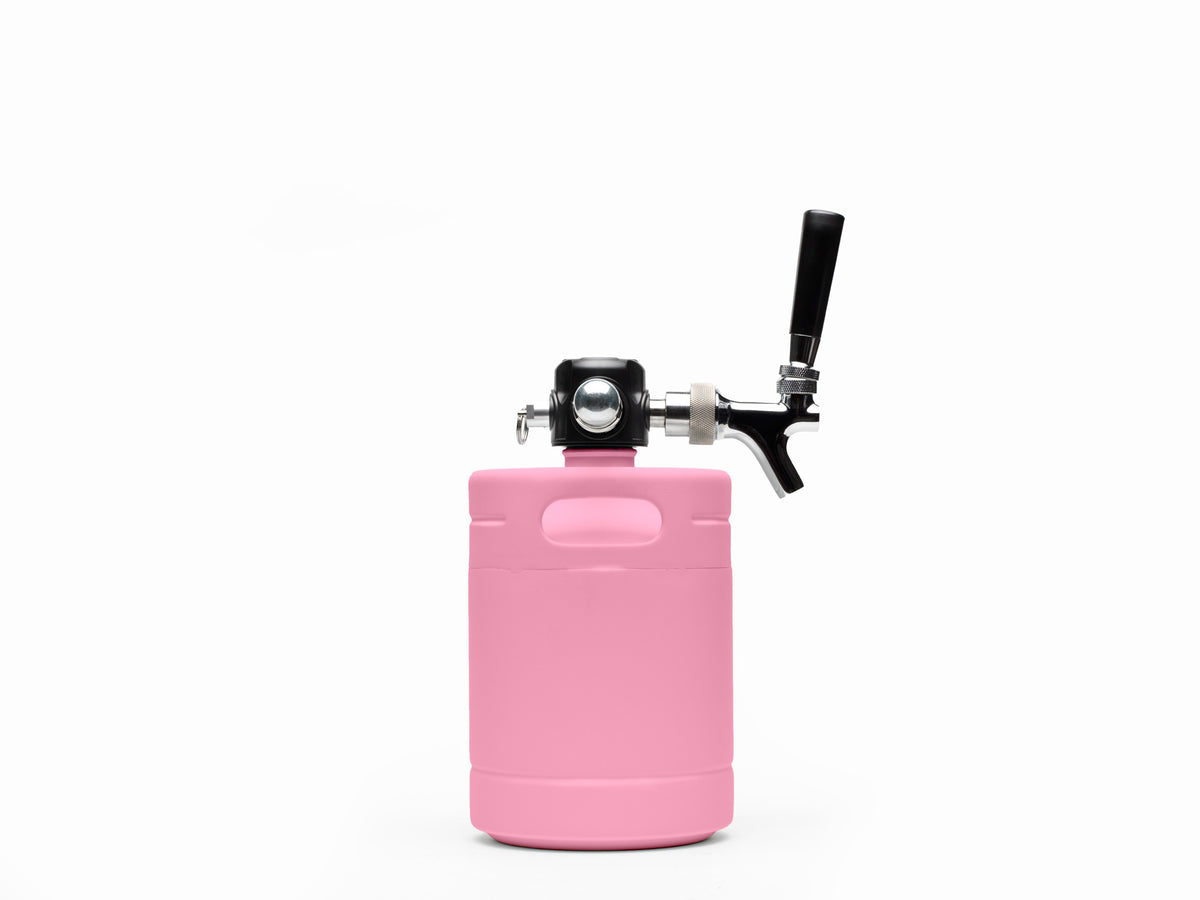 Fill with up to 2L of your drink, attach the tap + pressure lid, twist in a 16g threaded CO₂ cartridge, and pour.